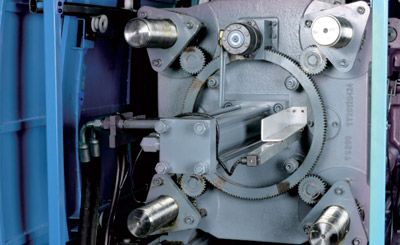 同步液壓精密調(diào)模機(jī)構(gòu)液壓馬達(dá)驅(qū)動(dòng),中心定位齒輪調(diào)模,使調(diào)模運(yùn)行為更順暢快捷。